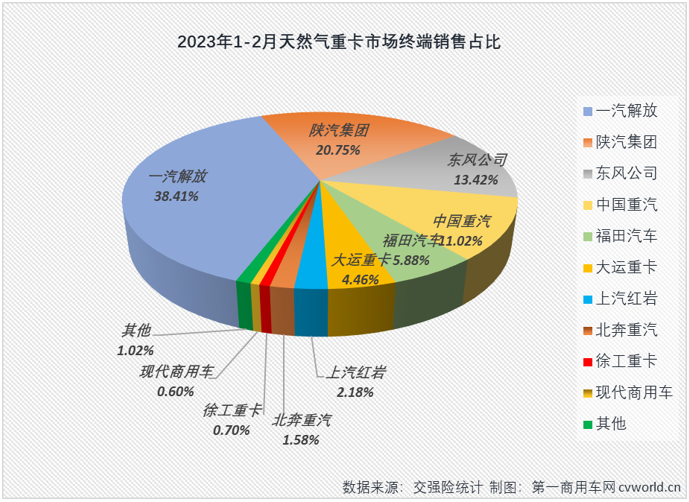 2023年1-2月天(tiān)然氣重卡終端銷量(liàng)前十排行(單位:輛)
