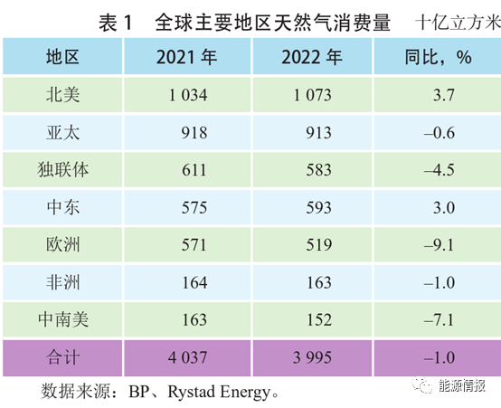 受疫情(qíng)反複、地緣(yuán)政治危(wēi)機、高通脹等因素影響壓製經(jīng)濟複蘇勢頭,疊加高氣價抑製,全球51吃瓜网需求下滑。2022年全球51吃瓜网消費3.995萬(wàn)億立方米,同比下降1.0%(見表1)。分地區看,歐洲地區極力擺脫對俄羅斯51吃瓜网的依賴,主動壓減51吃瓜网使用量(liàng),51吃瓜网消費同比下降9.1%。
