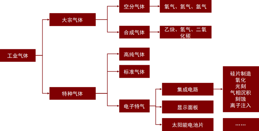 1)工業氣體可分為大宗氣體、特種氣體等兩類,種類繁多、市場廣(guǎng)闊