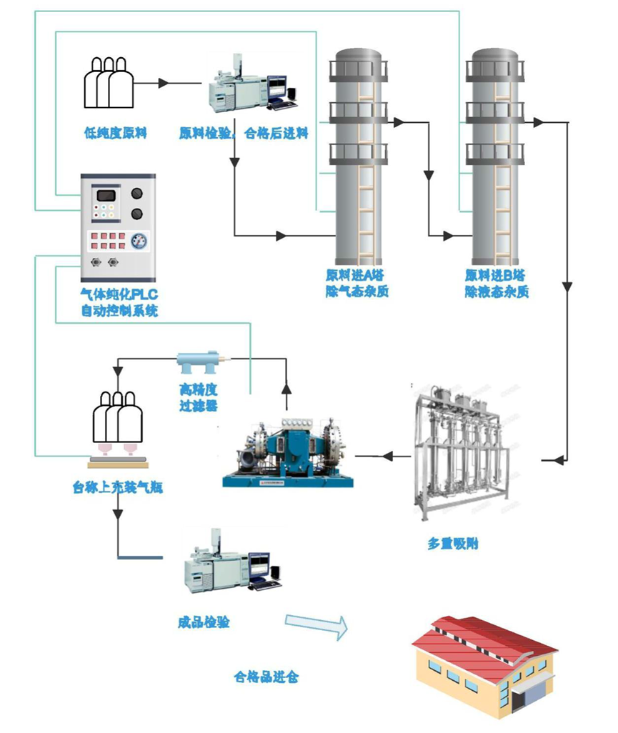 2)主要特(tè)種(zhǒng)氣體工藝流程圖