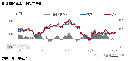 河北省是中國(guó)的鋼鐵重要基地,依托鋼鐵行業發展(zhǎn),河(hé)北(běi)省配套(tào)空分產能穩居全國第一。但近年來(lái),在供給側改革的推進下,鋼鐵市場需求結構也發生了(le)變化,液氧需(xū)求用量觸頂下(xià)滑。去年同期,鋼廠噸鋼利潤高位,鋼企生產積極性高,液氧需求釋放增(zēng)量,然今年噸鋼利潤倒掛,液氧(yǎng)需求明顯縮量,8月市(shì)場(chǎng)鮮有采購(gòu),廠商(shāng)液位水平升高,出貨壓力凸顯。具體來看(kàn),截至9月7日,冀北主流(liú)出廠降至450-850元/噸,工業氧450-500元/噸,區域內空分(fèn)生產維持正常,配套(tào)鋼(gāng)鐵(tiě)行業用量減少(shǎo),液氧分銷(xiāo)量有所增加,市場供需矛盾(dùn)凸顯。提純用氧受稀有氣體(tǐ)回暖支撐,氛圍有好轉(zhuǎn),主流出(chū)廠550-850元/噸(dūn),氪氙(xiān)含量不(bú)同,價差放大。冀南主流出廠降至500-600元/噸,環比降28%。武安地區采購結束,氛圍轉弱。二、影響因素分析:鋼廠利潤(rùn)下滑、PMI仍(réng)在榮枯線下方冶金行業作為液氧下遊消費(fèi)最大領域,占據液氧下遊(yóu)消費5成以上用量。那麽(me)鋼廠生產積極性直觀(guān)帶(dài)動液(yè)氧(yǎng)需(xū)求量。鋼廠(chǎng)利潤倒掛 難以帶動液氧需求釋(shì)放從鋼坯價格與利潤走勢圖來看,當前鋼廠利潤倒掛,相較二季度利(lì)潤差距甚遠。8月國內鋼坯市場(chǎng)亦表現偏弱,價格震蕩下調。終端需求尚未恢複,整體延續弱勢,成品材整體出貨緩慢(màn),對價格上漲支撐(chēng)不足。據中國鋼鐵工業協會統計,2023年8月下旬,重點統計鋼鐵企業粗鋼日產204.56萬噸,環比下降7.65%。粗鋼日產下滑,那(nà)麽對於液氧需求釋放偏(piān)弱,液氧價格承壓。8月31日,國家統(tǒng)計局發布(bù)2023年8月中國采購經理指數運行情況。8月份製造業采購經理指數(PMI)為49.7%,比上月上升0.4個百分點,雖然製造業景氣水平(píng)有所改善,但仍處於榮枯線下方,製造業表現一般,對於氣體需求難(nán)存良好支(zhī)撐,從而拖累市場價格。從需求麵來看,國家統計局數據顯示,1-7月中國(guó)粗鋼產(chǎn)量62651.46萬噸,同比增長2.5%,河北省粗鋼產量13576.06萬噸,同比增長4.53%。近期粗(cū)鋼(gāng)產量平控消(xiāo)息頻發,雖無正式(shì)文(wén)件,但部分鋼廠表(biǎo)示收到(dào)口頭(tóu)通知。若粗鋼產量調控定(dìng)調“不增不減”,2023年全年粗鋼產量不超去年,那(nà)麽2023年下半年河(hé)北粗鋼同(tóng)比縮量,液氧需求釋放或進一步縮(suō)減。從供應麵來看,短(duǎn)線市場空分開工維持正常生產,液氧供(gòng)應(yīng)相對充(chōng)裕,中長期來看,進入四季度,隨(suí)著采(cǎi)暖季來臨,鋼(gāng)廠(chǎng)減(jiǎn)產(chǎn)下,空分檢(jiǎn)修(xiū)或(huò)有所增加,屆時液氧供給或有縮減(jiǎn)。短線來(lái)看,河北地區基本麵支撐(chēng)偏弱(ruò),空頭占據主導下,液氧價格弱勢震蕩為主。