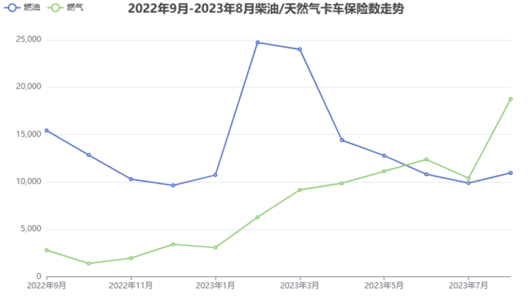 值得(dé)注意的是,5月之後連續三個月的時間,燃氣牽引車銷(xiāo)量超過燃油車,8月二者差距最大(dà),燃氣車比傳統燃油車多出(chū)近8000輛,這樣的情況是有史以來第一次(cì)出現。