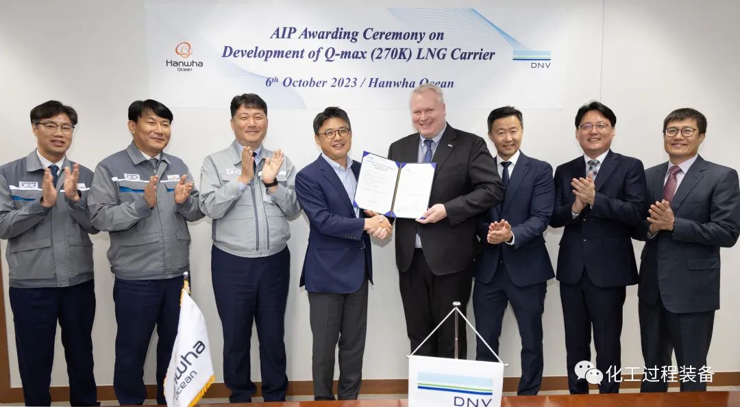 近(jìn)日(rì),船(chuán)級社DNV向韓(hán)國造船商韓華海洋Hanwha Ocean(前身為DSME)頒發(fā)了270,000立方米LNG運輸船的(de)原則批準書(AiP)。