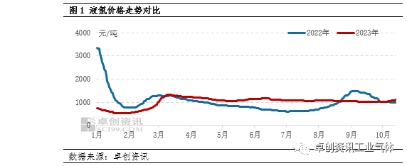 7月份開始,液氬價格一路下滑(huá),主要歸因於華東、華北、西北等地空分產能爬坡以及下遊需求難以釋(shì)放,市場(chǎng)參與(yǔ)者對(duì)後市持謹慎偏空心態。7月份全國液氬月均價降至1068.17元/噸,環比降5.26%。8-9月份,雖然(rán)高溫天氣影響下,空分產出縮量,但未能支(zhī)撐價(jià)格寬幅上漲,液氬走勢遠不及去年同期,整體在千元(yuán)附近波動。9月液氬均價降至1031元/噸,環比降4%,同比降21.6%。進入到10月(yuè)份,受中秋、國(guó)慶雙節影響,廠商提前降價(jià)排庫,節中內(nèi)蒙(méng)古地區受下遊光伏企業收貨支撐,液氬價格率先反彈,均價漲至1400元/噸附近。假期(qī)結束,廠商並無液位壓力,同時下遊企業補貨,市場看漲氛圍濃(nóng)厚,全國多(duō)地液氬價格借勢上漲,其中山西、內蒙古、甘肅漲幅均(jun1)超20%以上(shàng),山西漲幅最高至29.73%。