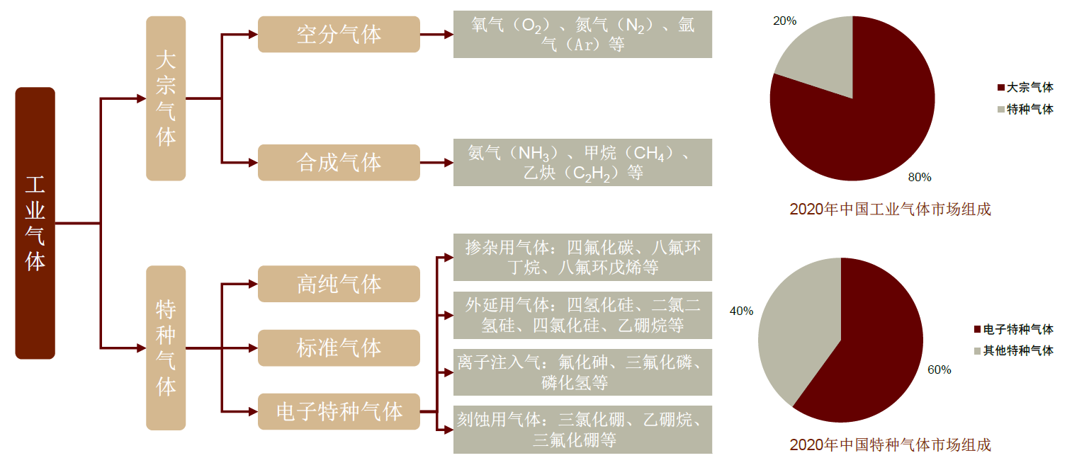 工業氣體是(shì)現代工業重要的基礎原料,因其種類範圍(wéi)廣泛、應用於眾多基礎領域,被(bèi)稱為“工業的血液(yè)”,對國民經濟的(de)發(fā)展具有戰略性和先(xiān)導性的作用。按照純度、應用領域的不同,工業氣體可以分為(wéi)大宗氣體(tǐ)和特種氣體。