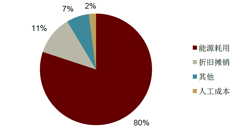 ► 空(kōng)分氣體(tǐ):原材料是從自然界免費獲取的空氣,能源耗用約占成本80%。根據杭氧股份2022年(nián)可(kě)轉債說明(míng)書,氣體銷售業務(wù)成本中能耗約(yuē)占(zhàn)生產成本80%。