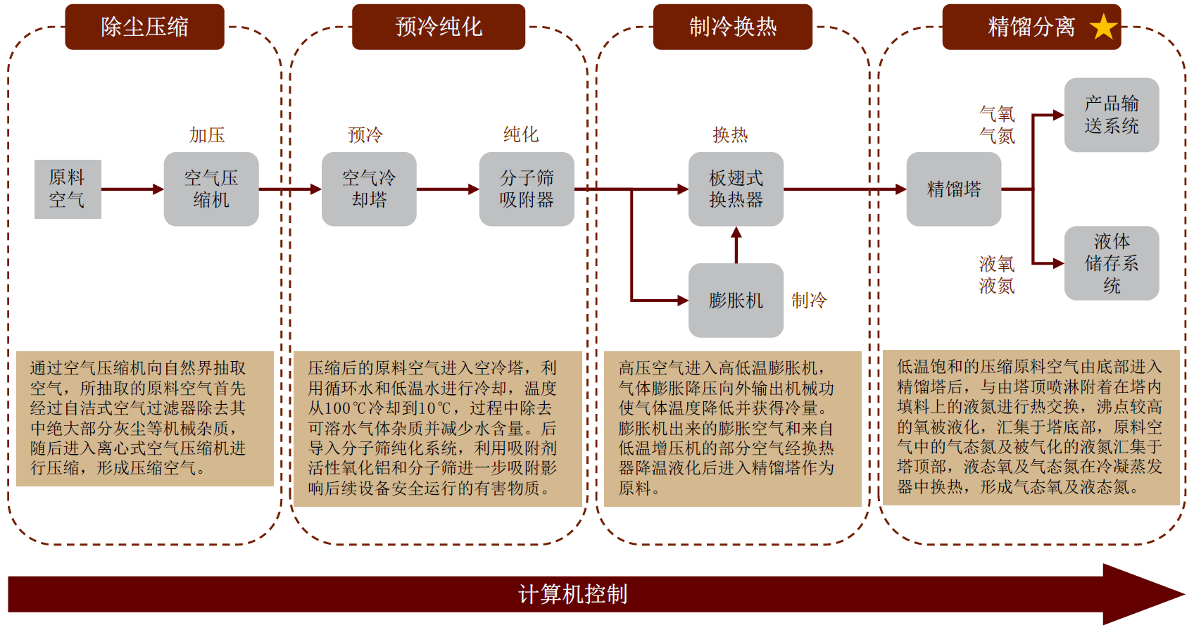 圖表7:低溫精餾為空分氣體主要技(jì)術路線,精餾分離為核心環節