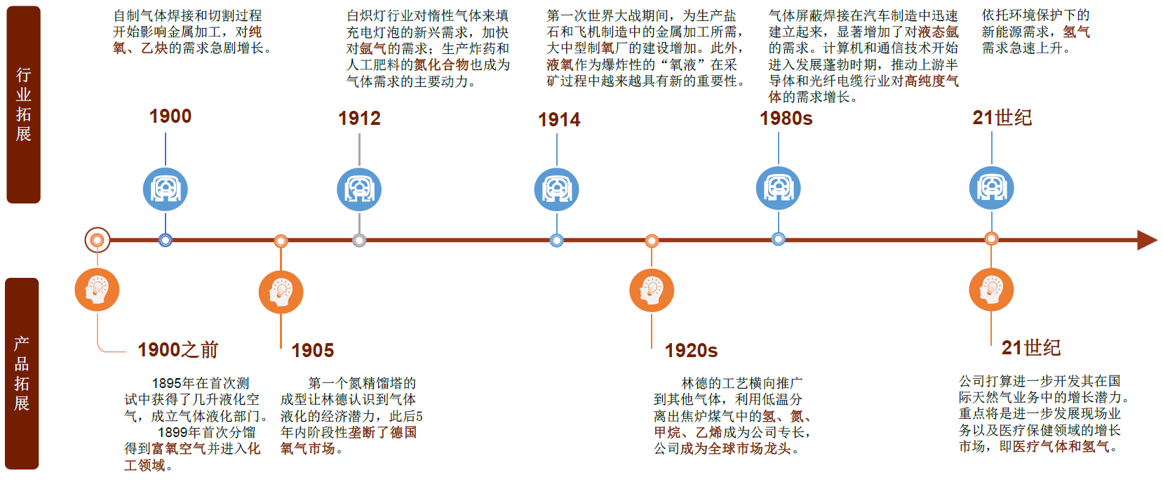 圖表14:林德公司始終緊跟下(xià)遊行業變革,不斷拓展業(yè)務範圍