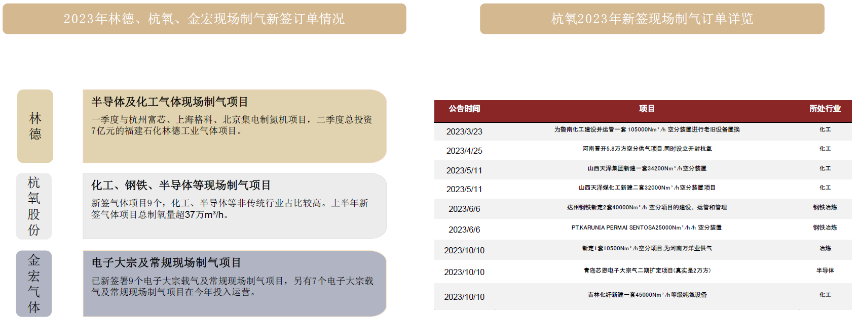 圖表24:2023年林德、杭(háng)氧、金宏現場製氣訂單情況