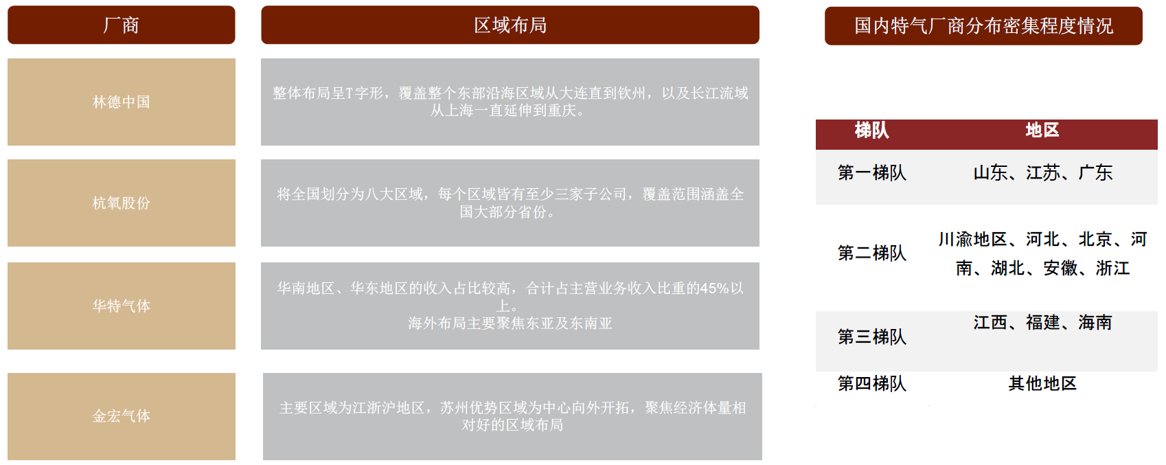 ► 區域布局方麵,林德側重沿江沿海分布,國內廠商可以依托自身區位優勢(shì)差(chà)異化布局提升市場份額(é);