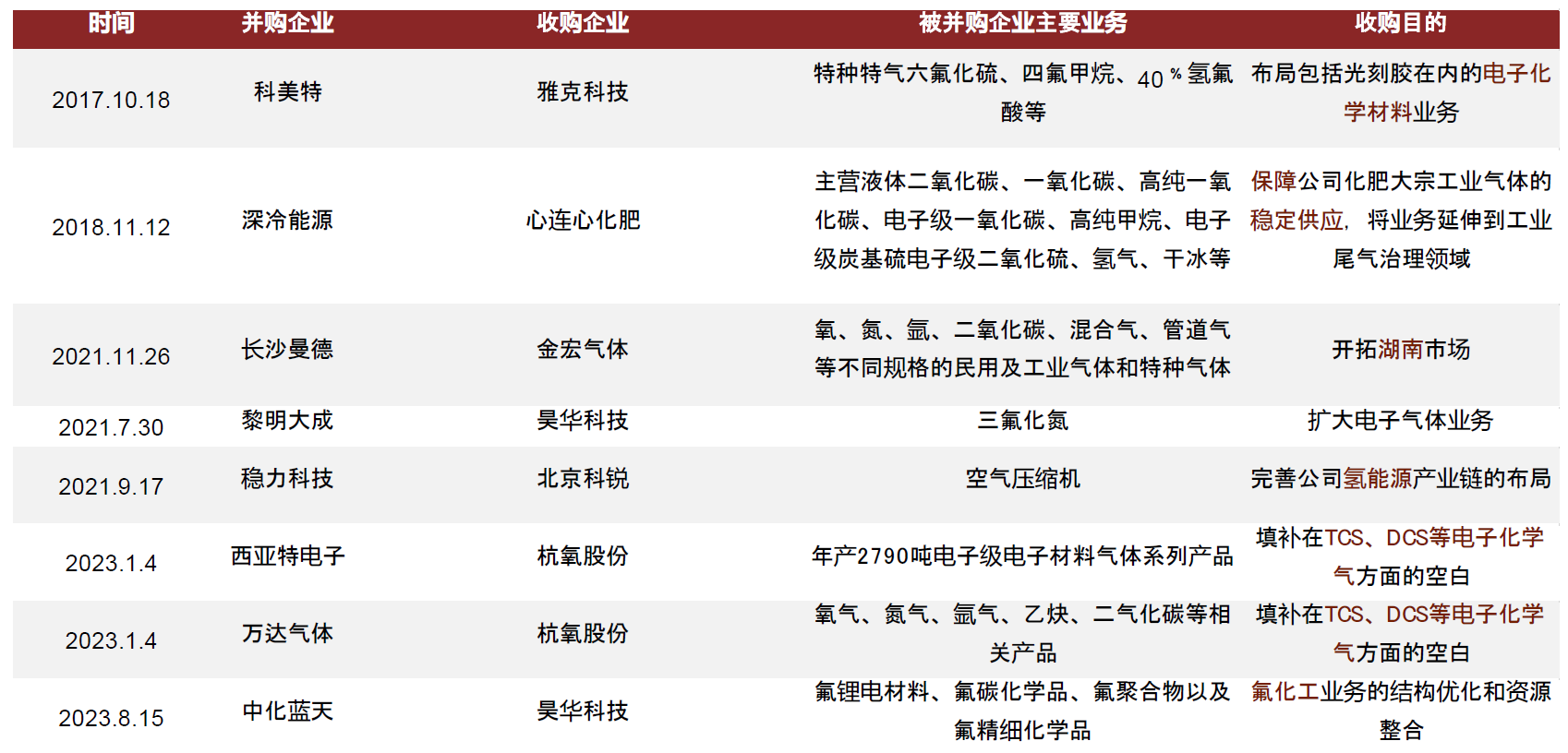 圖表26:國內特種氣體企(qǐ)業收購情況