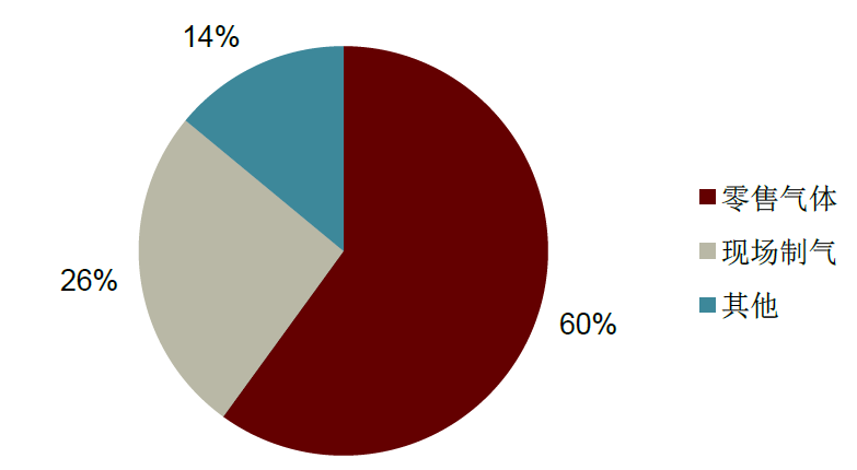 ► 零售供氣:主要應(yīng)用於新興分散零售市場,主要(yào)應用於電子、光伏、醫療等領(lǐng)域(yù),毛利率較高(gāo),為(wéi)供氣企(qǐ)業(yè)提供(gòng)盈利增量。指氣體供應商將現場製氣銷售後的剩餘氣體以瓶裝(zhuāng)氣或液態(tài)氣(qì)的方式銷售(shòu)給需求(qiú)相對較小、更為靈活的客戶,毛利率高於現(xiàn)場製氣,為(wéi)氣體(tǐ)供應商提供利潤彈性。