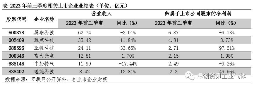 財報速遞:前(qián)三季度電(diàn)子特氣公司業績飄紅居多
