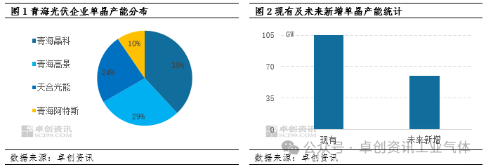 隨著光伏產業熱度不(bú)斷提升,同時結合青海本地資(zī)源優勢,首個(gè)2.2GW光伏發電項目在本地誕生(shēng)。為滿足多元化發展,光伏龍頭企業(yè)紛(fēn)紛駐足此地,助力打造青海“國家清潔能源產業高地”,並形成了多(duō)晶矽-單晶矽(guī)-切片-太陽能電池-光伏組件完整的產業鏈(liàn)據。卓(zhuó)創資(zī)訊數據統(tǒng)計,截至目前青海地(dì)區現有單晶矽產能約(yuē)在105GW,主要集中在晶(jīng)科、高景、天合光能以及(jí)阿特斯等頭部企業(yè)。其中晶科(kē)單晶矽產能40GW,分別與2022年6月以及2023年8月投(tóu)產,占比約在38%,穩居首位;高景單晶矽產能30GW,占比約(yuē)在29%,排行第二(èr);另外天合光能單晶產能25GW,占比在24%;阿(ā)特斯(sī)單晶產能(néng)10GW左右,占比為10%。後期隨著高景(jǐng)、天合等二期項目投產,其(qí)單晶產能分布(bù)排行將有所(suǒ)變化。
