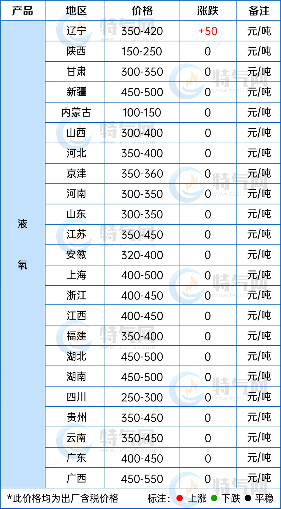【液氧日評】北方地區液氧市場(chǎng)行情整體平穩為主,局(jú)部價格窄幅調整。遼寧地區下(xià)遊需求尚可,主力企業庫(kù)存一般,成交穩定,價格窄幅上調;華東(dōng)液氧市場持穩(wěn)為主,大部分地區氣體廠家出貨承壓,價格低位(wèi)運行;華南地區液氧(yǎng)市場需求一般,價格弱勢調整;西南液氧市(shì)場暫穩運行,整體波動不大(dà),市場(chǎng)成(chéng)交(jiāo)一般,價(jià)格暫無調整。