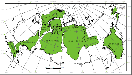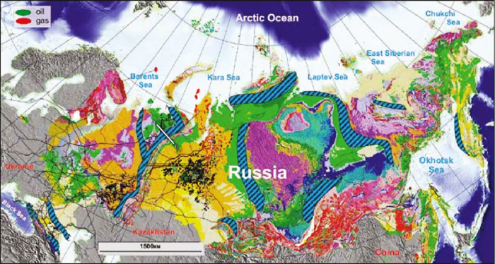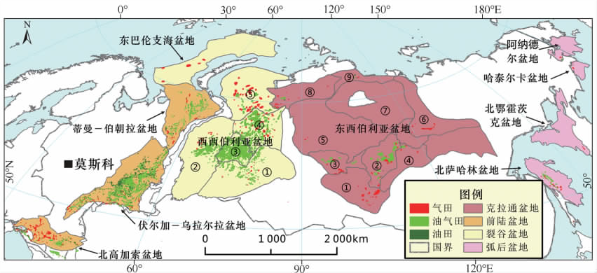 俄羅斯主要含油氣盆地及油氣田分(fèn)布圖