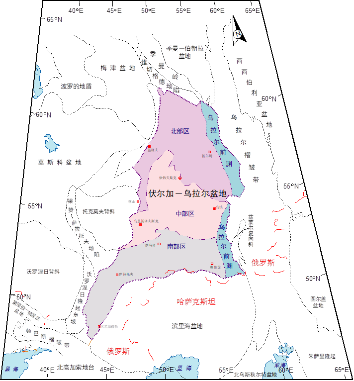 伏爾加-烏拉爾盆地構造(zào)位置圖