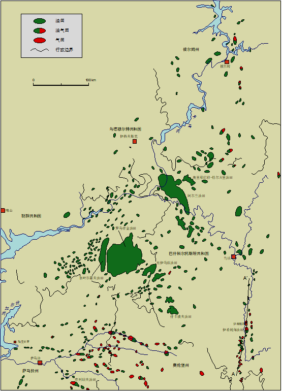 伏爾加-烏拉爾地區(qū)主要油氣田分布圖
