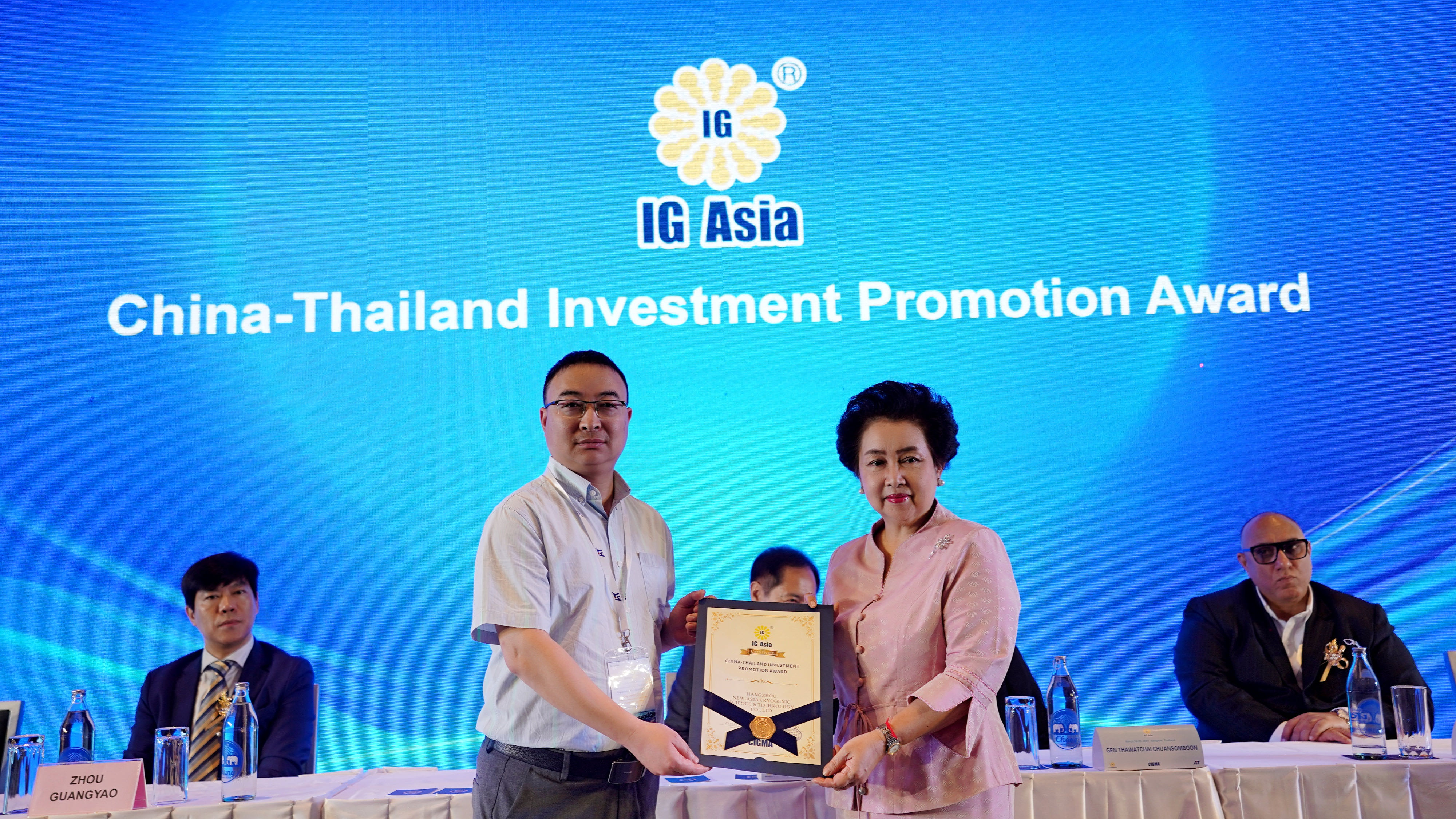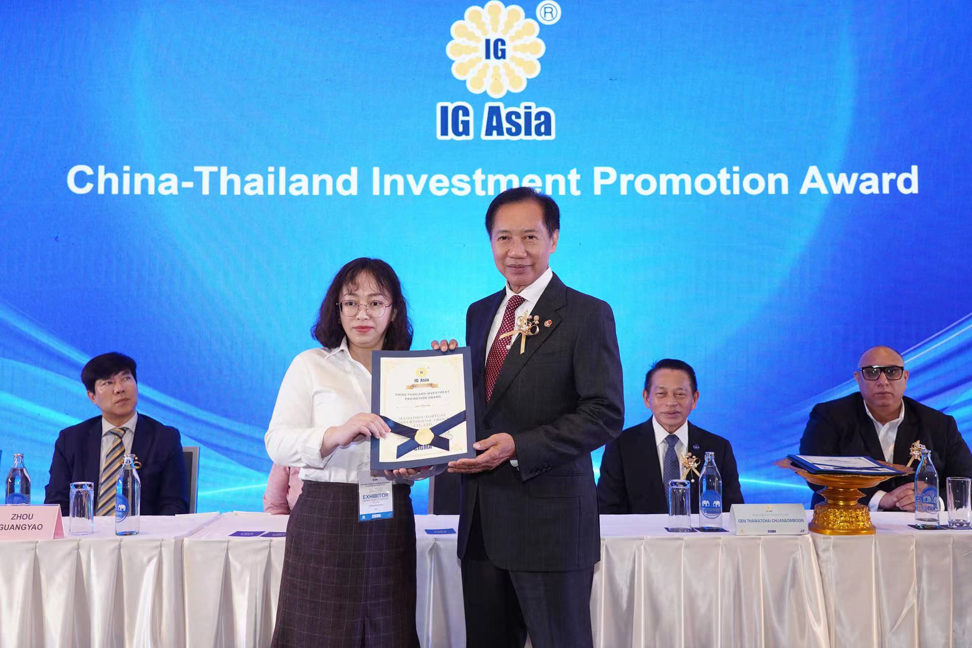 開幕(mù)式期間展(zhǎn)會主(zhǔ)辦方(fāng)——中國氣體產業聯盟邀請出席開幕式(shì)的泰國官方嘉賓為這次集體出海開拓東南亞(yà)氣體市場的(de)34家國內領(lǐng)先的氣體及氣(qì)體設備企業頒發了“中泰投資促進榮(róng)譽獎”證書,以表彰(zhāng)中方參展企業為推動中、泰氣體產業間的發展做出(chū)的積極貢獻。