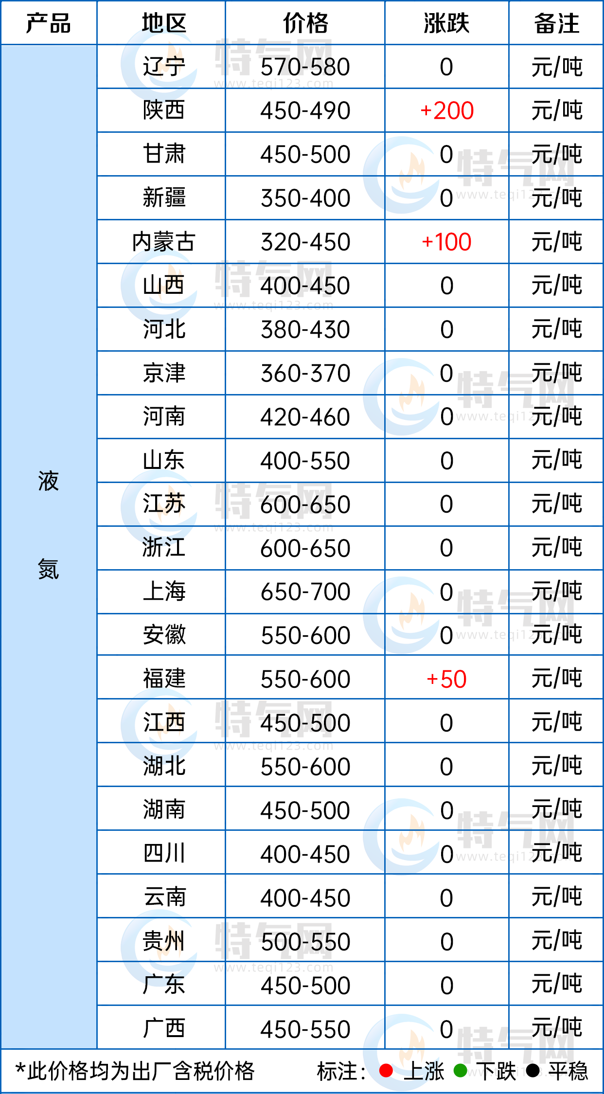 【液氮日評】北方地區液氮市場表現不一,西北地區部分主力(lì)企業裝置檢修(xiū),市場貨源供應緊張,陝西、內蒙古、寧(níng)夏等地成(chéng)交重心穩中上行(háng);華東液氮市場延續平穩走勢(shì),上遊廠家供貨充裕,其中福建地(dì)區供應減少,價格小幅調整;南方液氮市場變化不大,成交一般。