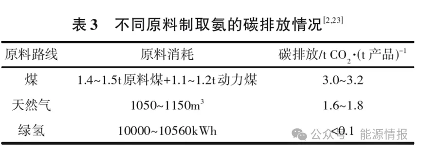 一(yī)是綠氨的製氫和(hé)空分單(dān)元以可再生能源為動力,工藝過程幾(jǐ)乎實現零碳排。與(yǔ)煤炭(tàn)等化石能(néng)源為原料的合成氨工藝比較(jiào),綠氨具有較強的碳減排優(yōu)勢,見表3。
