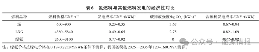 未來隨(suí)著綠氨成本下降至0.20CNY/kWh左右(yòu),且國(guó)內碳(tàn)稅(shuì)預測價格在120~160 CNY/t的(de)條件下,氨燃料電站將可平價代(dài)替LNG或(huò)燃煤電(diàn)站,見表6。