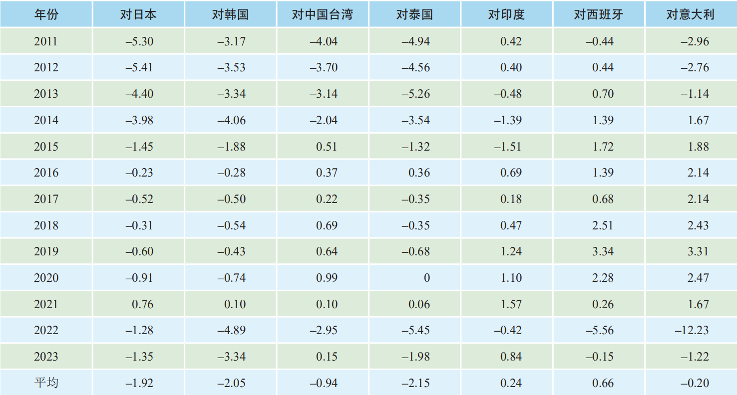 2.3 中國大陸對相關國家和地區的溢價情況