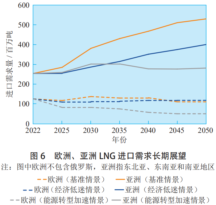 4.1 需求方麵,歐洲需求逐步下降,亞洲仍為未來最主要的LNG進口區域