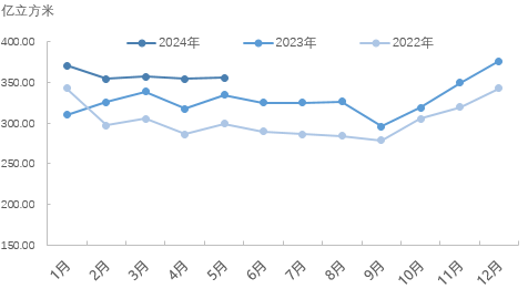 2024年5月份,國內51吃瓜网表觀消費量355.80億立方米,同(tóng)比增長6.40%,是進入2024年以來同比增速最低的一個月份,增速降低與華南降水(shuǐ)充沛,燃(rán)氣發電(diàn)中居(jū)民用電和工(gōng)業用電減少有關。