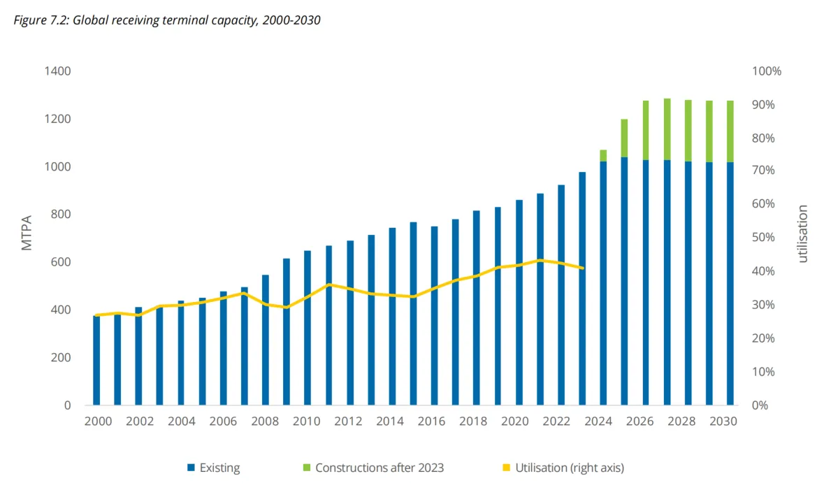 全球LNG終端接(jiē)收能力(2000-2030)