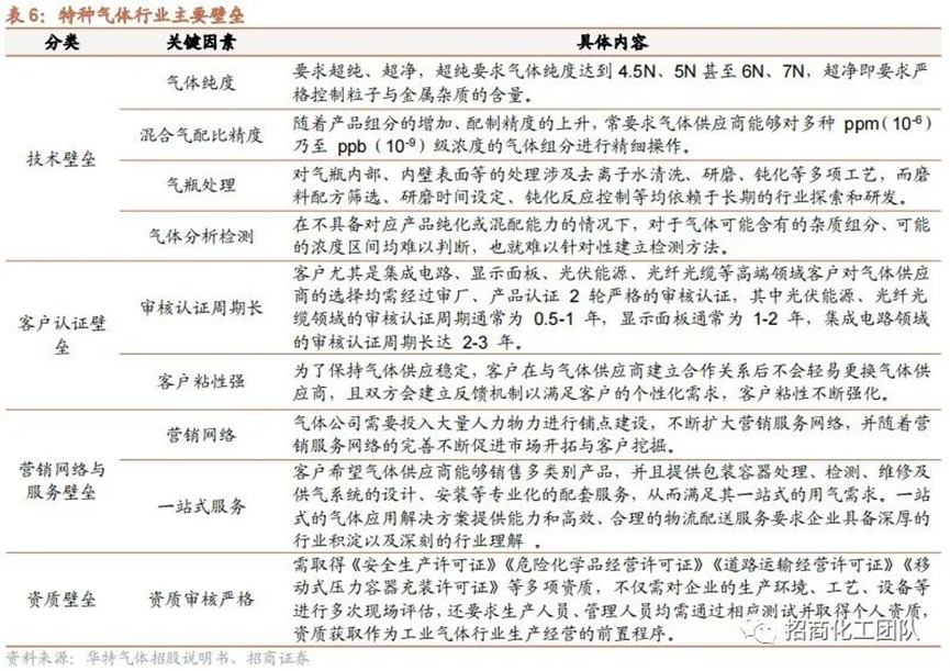 特(tè)種氣體具有較高的技術壁壘、客戶認證壁壘、營銷網絡與服(fú)務壁壘和資質壁壘(lěi)。
