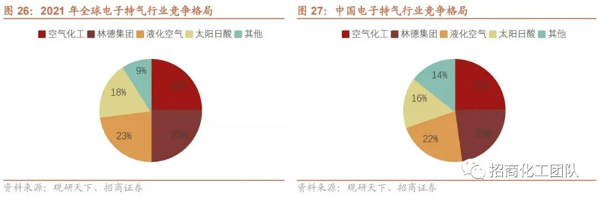中國特氣市(shì)場主要被外資占據,國產替代(dài)空間(jiān)巨大。全球和中國電子特氣(qì)市場(chǎng)均主要被(bèi)海外公司占據,全球氣體主要生產商分(fèn)別為林德集團(tuán)(林(lín)德集(jí)團和(hé)普萊克斯(sī)合並)、液化空氣、空氣化工和日(rì)本酸(suān)素(原名大陽日酸),2021年他們占據全(quán)球電子特氣91%的市(shì)場份額,並且在中(zhōng)國占據主導地位。