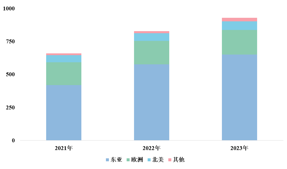全球主要國家與地(dì)區燃(rán)料(liào)電池汽車發展趨穩(wěn),階段性轉入示範質量優化提升階段。截至2023年底,總保有量超8.2萬輛,同比增長21.4%。韓國燃料電池汽車保有量(liàng)仍位(wèi)居榜首,累計達到3.4萬(wàn)輛。中國燃料電池汽車保有量超1.8萬輛(liàng),超過美國位居全球第二,其中,2023年增加近6,000輛,位居(jū)全球第一。日(rì)本、德(dé)國燃料(liào)電池汽車市(shì)場總保有量超8,500輛與2,900輛。作為重要基礎(chǔ)設施,全球主要國家與地區加氫站建設(shè)穩中有進(jìn)。根(gēn)據中國氫能聯盟研究院統計各國(區域)官方機構發布數據顯示,截至2023年底,全球在營加氫站930座,同比增長12.2%,依舊主要(yào)集中在以我國為首的東亞(yà)地區,共有在營加氫站650座(zuò)。歐洲、北美加氫站數量分別達到188座和65座。