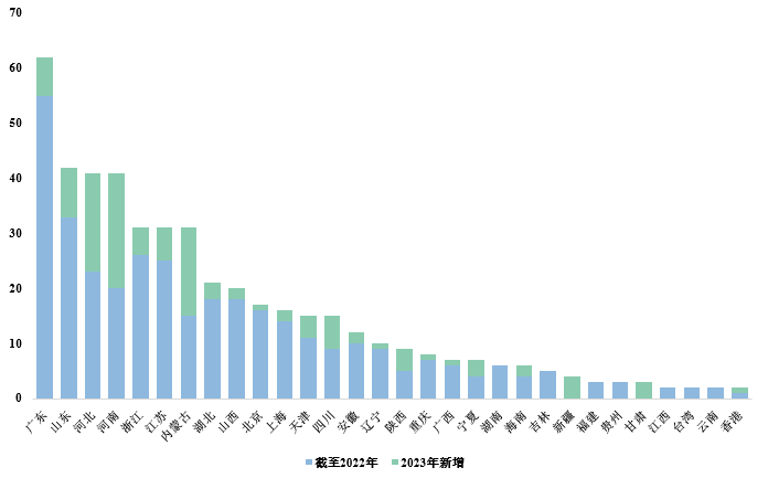 截至(zhì)2023年底,我國已建(jiàn)成加氫(qīng)站474座,新建成加氫站122座,累(lèi)計(jì)覆蓋30個省(直轄市、自治區、特區)。其(qí)中在營加氫站281座,待運營152座[5]。從建設地點看(kàn),截至2023年底,廣東(dōng)、山東、浙江、江蘇、河北建成運營加(jiā)氫站最多,分別達到(dào)55座、33座、26座、25座、23座(zuò);其中2023年,建成運營最多的五個省分(fèn)別是河南、河(hé)北、內蒙(méng)古、山東、廣東,分別達到21座、18座、16座、9座、7座。甘(gān)肅、新疆(jiāng)實(shí)現加氫站數量“零”的突破(pò)。