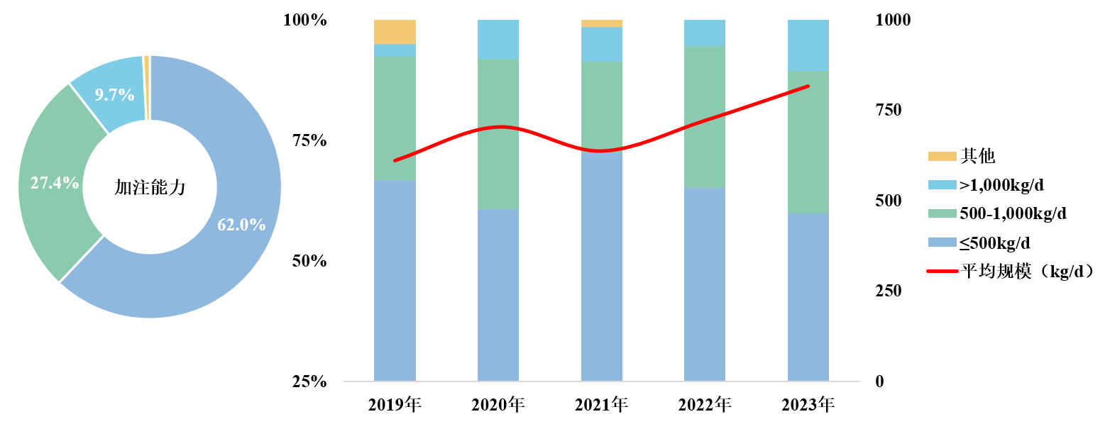 從加注能力看,大容量加氫站占(zhàn)比大幅提升