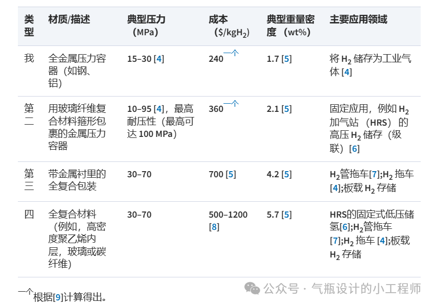 儲存氫氣最簡單、最成熟(shú)的方法(fǎ)是將其壓縮並(bìng)填充(chōng)到壓力容器中。與表1相比,目前有四種類型的發(fā)達船舶可用。選擇使用哪種容器類型是基於應用領域,並在技術性能(néng)和(hé)成本之間做出折衷。