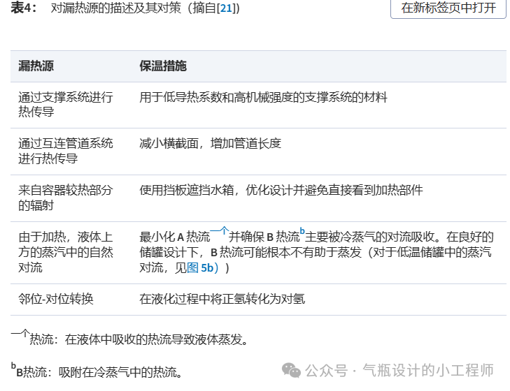 儲存LH2的低溫罐(如圖5a所示)的一個主(zhǔ)要技術挑戰是減少其蒸發損失。LH2 吸收的熱量導致其蒸發。由於金屬內容器的設計不能承受更高的壓力(lì),因此必須釋放蒸發的氫氣,從而導致材料蒸發損失(shī)。熱傳導、輻射、對流和對(duì)位轉換(huàn)是熱泄漏的主要來源。表 4 總結了(le)目前保持低溫罐隔熱的措施。