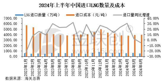 2024年上(shàng)半年中國進口LNG數量3799.7萬噸,同比增長13.9%,而(ér)中國進口LNG成本為4017.4元/噸,同比下跌12.12%。