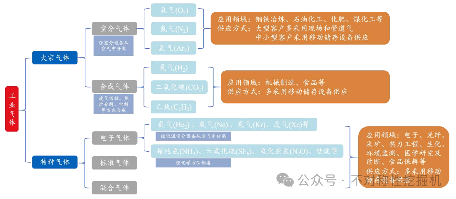 根據用量大小(xiǎo)及應用領域可被分為大宗氣體和特種氣(qì)體兩大類。