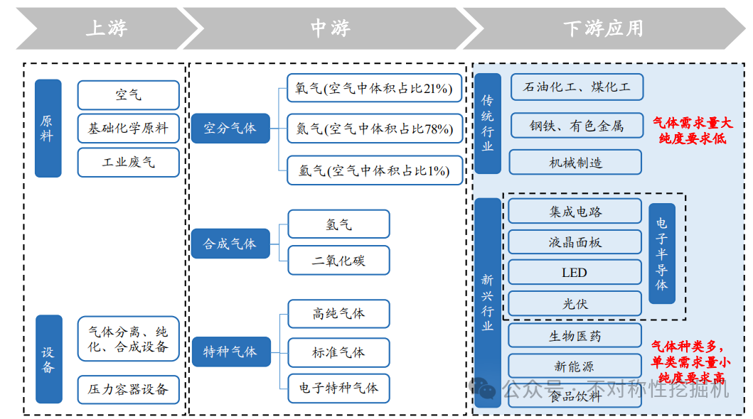 下遊領域包括鋼鐵、冶金、化工等行業以及電子半導體、機械製造、LED、液晶麵板、食品、醫藥醫療等行業。