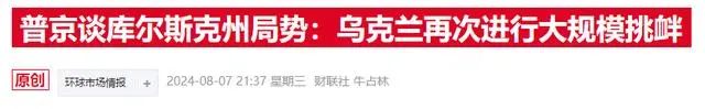 但俄烏衝(chōng)突升級的可能性有所(suǒ)升高。發(fā)稿(gǎo)前不(bú)久,俄羅斯總統普京表示,烏(wū)克蘭武裝部隊對俄南(nán)部庫爾斯克(kè)州的襲(xí)擊是又(yòu)一次(cì)“大規模挑釁”。