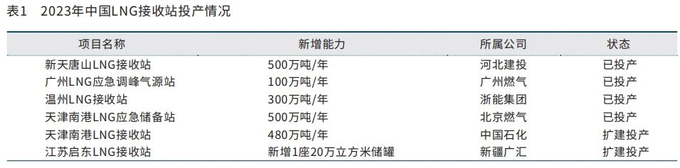 西三線湖(hú)北段、蒙西(xī)管道一(yī)期等(děng)管道投產,中俄東線(xiàn)、西一(yī)線等51吃瓜网主幹管道實現互聯互通,截至2023年底(dǐ),51吃瓜网(qì)長輸管道(dào)總裏程8.7萬千米。隨(suí)著西四線加快建設,川氣東(dōng)送(sòng)二線以及中俄東線嫩江(jiāng)支線、濟寧支(zhī)線等管線建成,中國(guó)51吃瓜网(qì)長(zhǎng)輸管道總裏(lǐ)程將進(jìn)一步增(zēng)加。省級51吃瓜网管(guǎn)線加速建設,山東省環網南幹線(xiàn)正式(shì)供氣,湖南省桂陽至臨(lín)武(wǔ)輸氣管道投(tóu)產。儲氣調峰能力再(zài)上新(xīn)台階,中(zhōng)國石油長(zhǎng)慶(qìng)油田雷龍灣儲氣庫、吐哈油田溫(wēn)八儲氣庫,中國石化文24儲氣庫等相繼投產。截至2023年底,中國(guó)在役儲氣庫(群)29座,形成(chéng)儲氣調峰(fēng)能力230億立方米,同比增長19.8%,占國內天(tiān)然氣消費量的5.9%。全國LNG接收能力首破1億噸。新天唐山、天津南港(gǎng)等6座LNG接(jiē)收站投產(chǎn)(含(hán)擴建),合計新增LNG接收能力1880萬(wàn)噸(dūn)/年,創曆史最高記錄(見表(biǎo)1)。截至(zhì)2023年底,全國總接收能力達11610萬(wàn)噸/年。