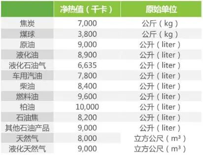 圖(tú)表:各能源淨熱(rè)值對(duì)比