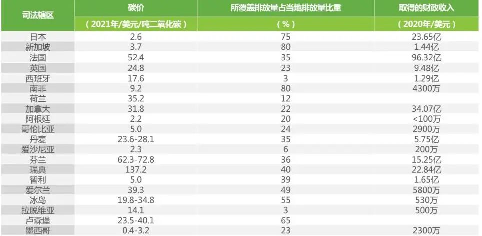 淨零碳承諾需要有嚴格的短(duǎn)期及中期行動來支持,國(guó)家間(jiān)正在製定愈加嚴格的碳定價工具。從碳排放交易機製(zhì)來看,日本、新加坡等亞太(tài)國家製定價(jià)格為2-3美元/噸二氧(yǎng)化碳;與中國人均碳排放相近的法(fǎ)國、英(yīng)國等歐洲國家定(dìng)價(jià)已(yǐ)高於20美元(yuán)/噸,采取更嚴厲的機製力達(dá)淨零碳承諾。