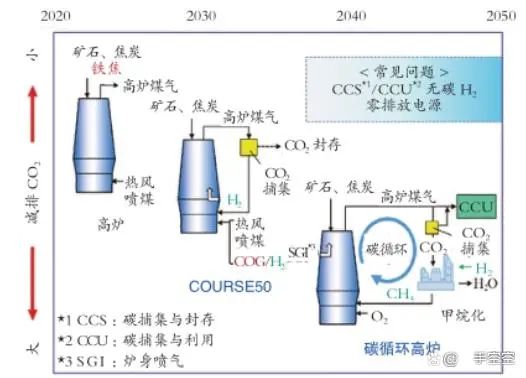 傳統鋼鐵工業的生產過程嚴重依賴於(yú)煤和焦炭等(děng)化石燃料,因此,鋼(gāng)鐵行業也成為僅次於電(diàn)力行(háng)業的能耗和CO₂排放大戶。國際能源署的統計結果表明製造業CO₂排放量(liàng)約占全球CO₂排放總量的(de)40%,其中鋼鐵工業占製造業CO₂排放量的27%左右,其中煉鐵(tiě)係統的能(néng)耗占鋼鐵生產總能耗的70%以上,CO₂排(pái)放量約占(zhàn)鋼鐵生(shēng)產全流程的80%左右(yòu),是鋼鐵工業(yè)節能減(jiǎn)排的重點環節。堅持高爐精料操作,優化(huà)風溫、富氧等調劑手段,推(tuī)進低燃料(liào)比操作固然是煉鐵係統(tǒng)降低能耗,減少CO₂排放的(de)重要措施之一,但減排效果十分有(yǒu)限,采用碳捕捉結合低碳煉鐵技術減少CO₂直接排放(fàng),將逐步成為解決鋼(gāng)鐵行業碳排放的有效措施。