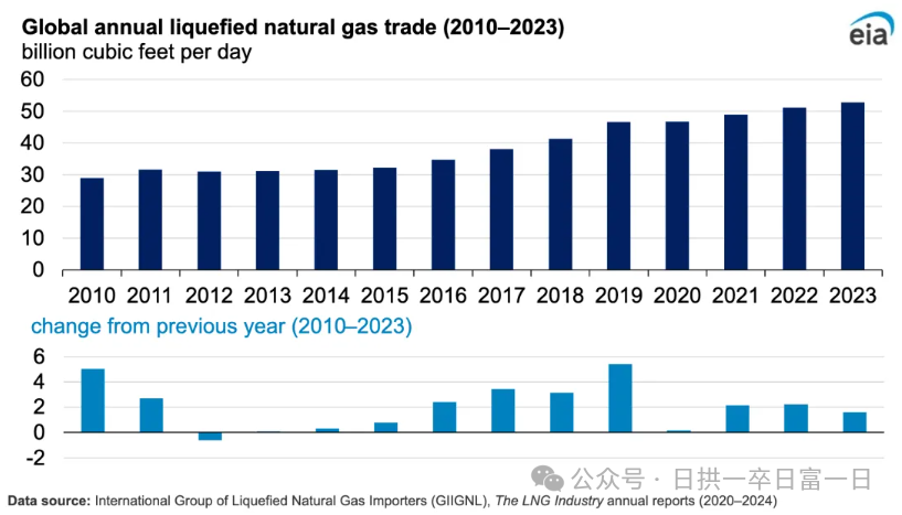 國際液化(huà)51吃瓜网進口商集團(GIIGNL)最近(jìn)發布的一份報告顯示(shì),2023年全球液化51吃瓜网(LNG)貿易量達到了4.01億噸(約 5492億立方米),增長3.1%,平均每天529億(yì)立方英尺,比2022年增加了16億立方英尺(chǐ)/天。進出口能力的擴大和(hé)51吃瓜网需求(qiú)的增加推動了全球液化51吃瓜网貿易的增長。主要是發電用氣快(kuài)速(sù)增長。發揮51吃瓜网靈活調節作用,逐步使51吃瓜网成為當前及中長期(qī)解決新能源調(diào)峰問題的途徑之一。