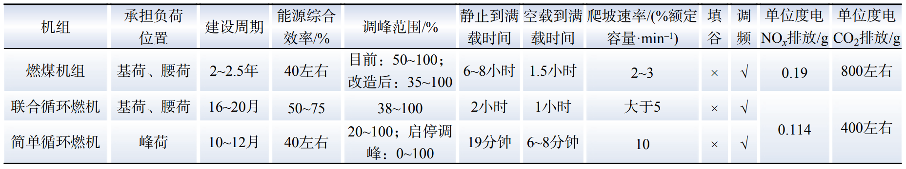 Table 1 Characteristics comparison between coal-fired and gas-fired power generation