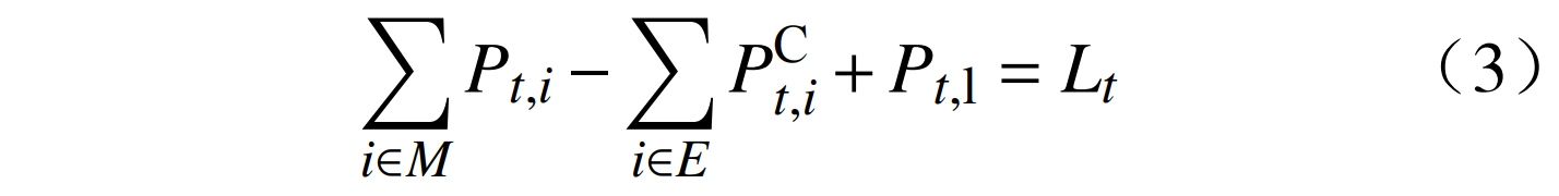 分別(bié)為時段t電源類型(xíng)i的發電功率、儲能(néng)i充電(diàn)(抽水)功率、區域淨受入電力、用電負荷;M為各類(lèi)電源集合(hé);E為儲能類型集合。