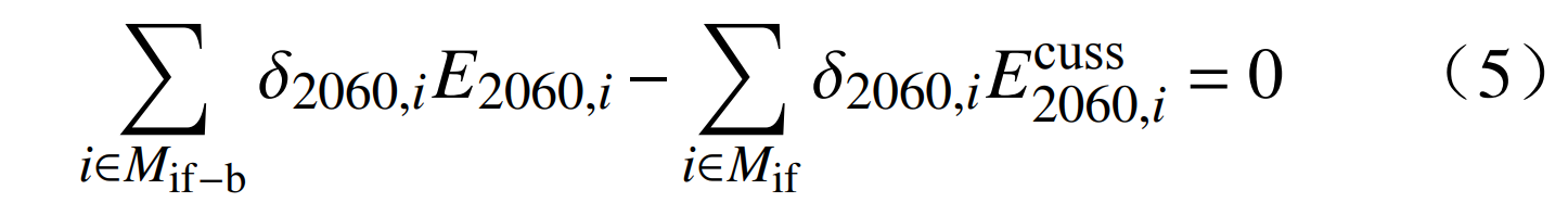 式中:σt、Et,c、Ft,c,m分別為水平年t的單(dān)位發電煤耗、煤電累積(jī)發電量、發(fā)電用煤可(kě)供上限。能源電力發展政策(cè)約束主要包括碳排放和非化石能源消費占比(bǐ)等約束,對於(yú)2060年碳排放約束,有式中: