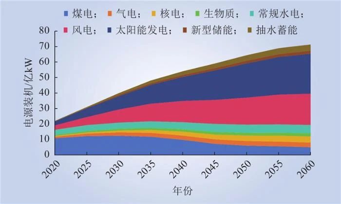 圖(tú)3 2020—2060年全國電源裝機結構Fig.3 National power installation mix from 2020 to 2060